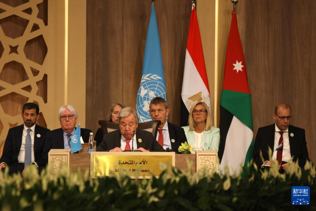 会议由约旦、埃及和联合国联合举办,包括约旦国王阿卜杜拉二世、埃及总统塞西、巴勒斯坦总统阿巴斯、联合国秘书长古特雷斯、美国国务卿布林肯在内的多个国家的领导人或代表及国际组织负责人参会。