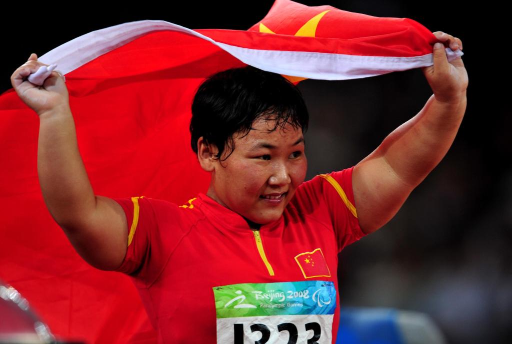 2008年9月13日,在北京2008年残奥会女子铁饼F40级决赛中,孟根吉米素以28米04的成绩夺冠。新华社记者 杜华举 摄