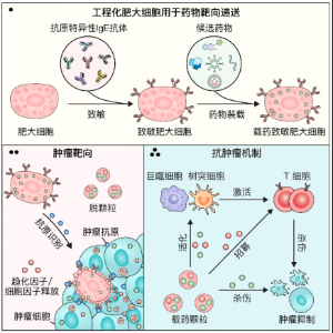 “将肥大细胞这一特殊的致敏细胞打造成靶向药物,兼具精准聚集和快速激活的优势。”顾臻介绍,利用肿瘤相关抗原作为“过敏原”,刺激肥大细胞在体内主动聚集至肿瘤部位,诱发“肿瘤过敏反应”,实现对肿瘤组织的精准识别和迅速免疫激活,同时可作为“活细胞载体”装载溶瘤病毒等药物发挥疗效。
