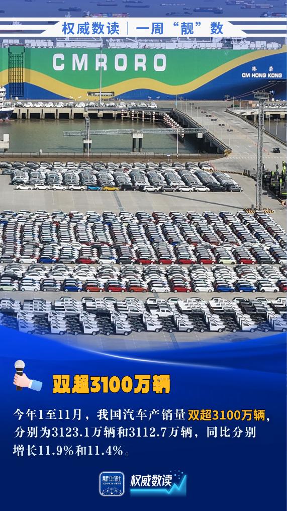 2025年,全国粮食产量14297.5亿斤,同比增长1.2%;今年前11个月,办理离境退税的境外旅客数量同比增长285%;前11个月,我国汽车产销量双超3100万辆……本周,这些数据最值得关注!