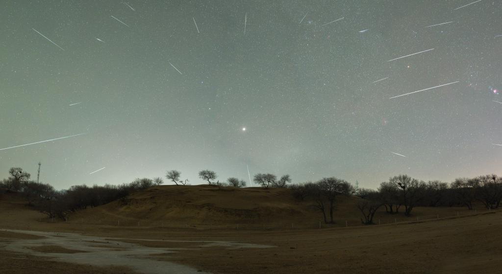 12月14日凌晨在黑龙江省伊春市伊美区拍摄的双子座流星雨。新华社发(李佳星摄)