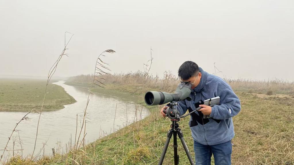 这是刘鹏在湖南西洞庭湖国家级自然保护区进行候鸟监测。新华社发