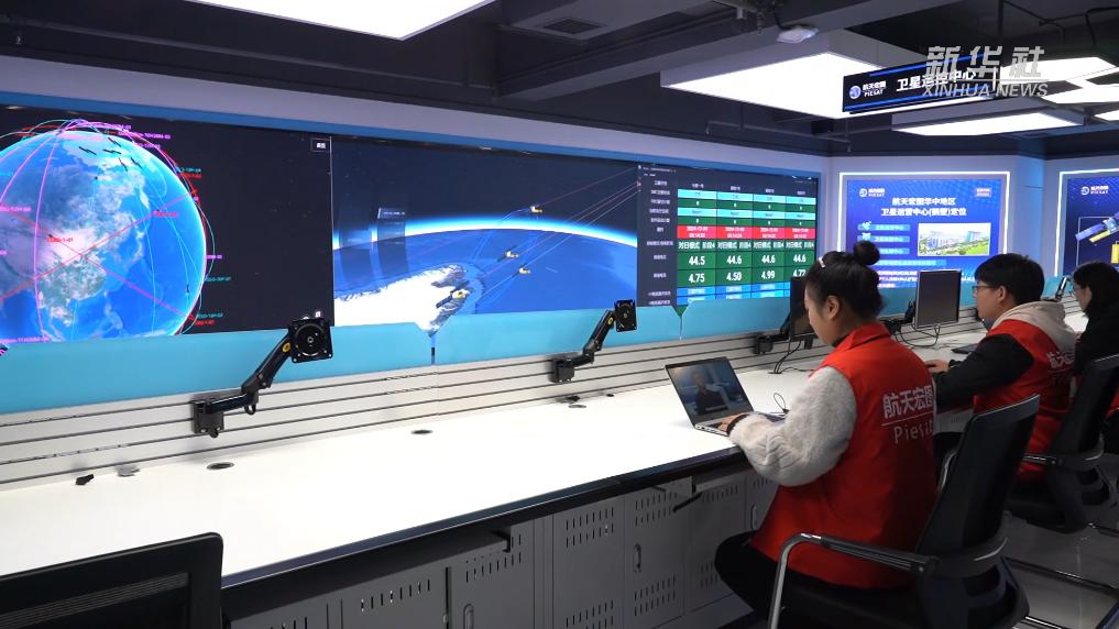 这里是位于河南省鹤壁市科创新城的河南航天枢纽港。巨大的屏幕上,一颗颗卫星正划过深邃浩渺的天穹,实时传回高分辨率影像和数据信息,为农业生产、环境监测、水利防汛、应急管理等领域提供着精准数据支撑。