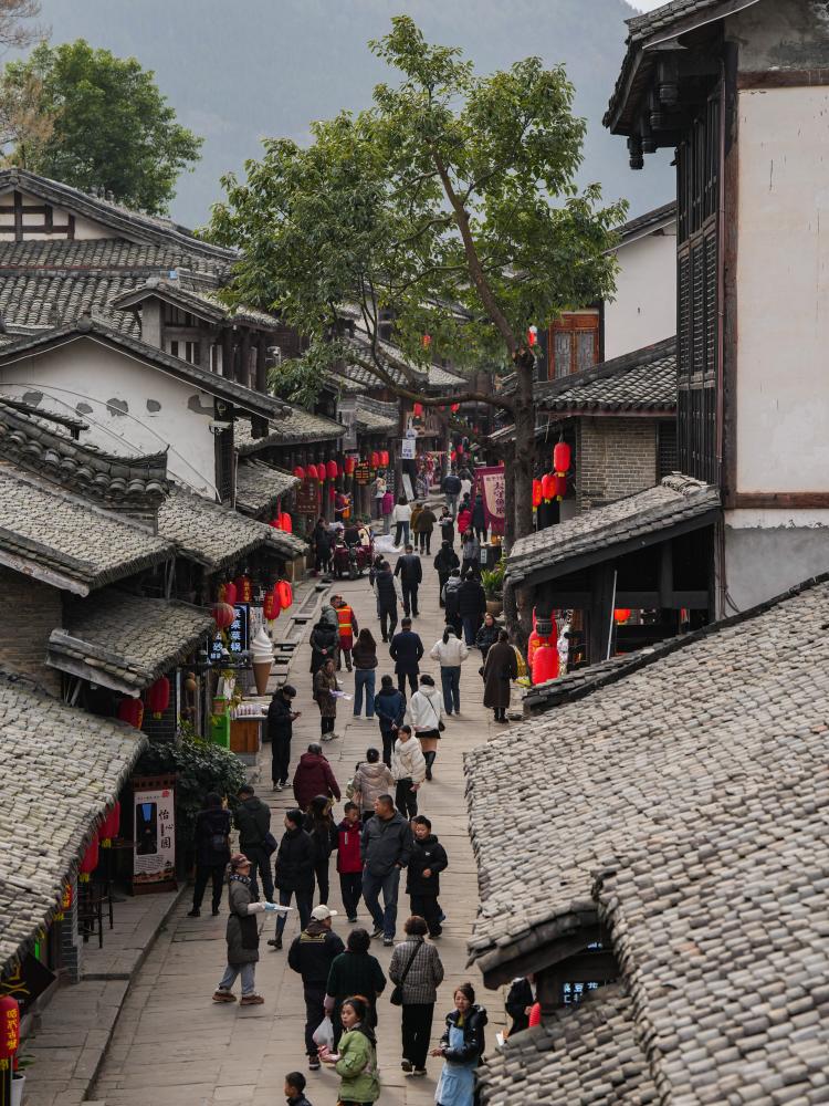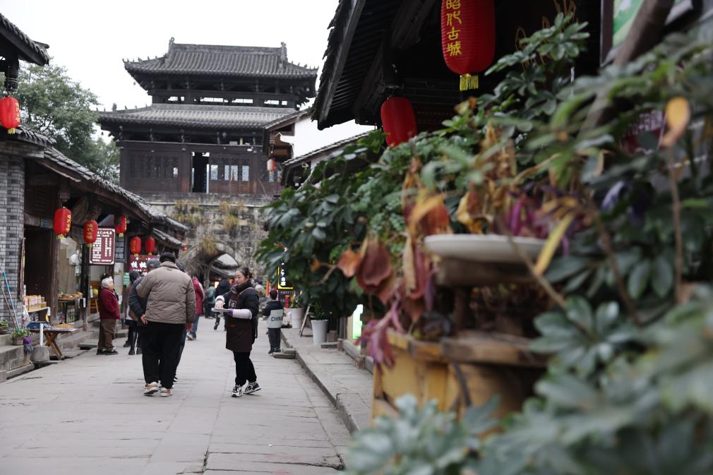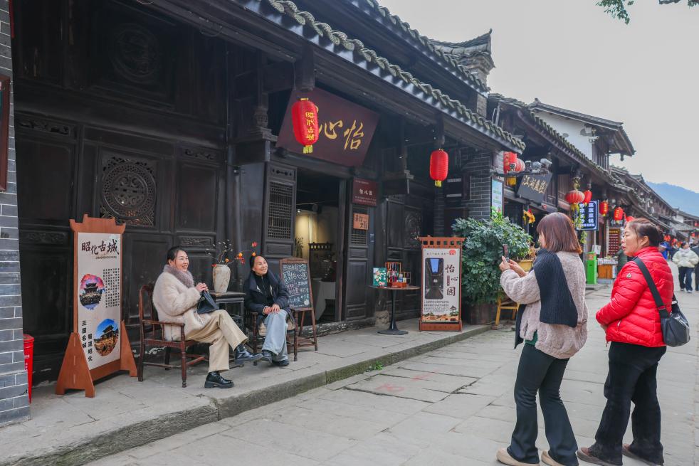 游客在昭化古城内拍照留影(2025年12月13日摄)。