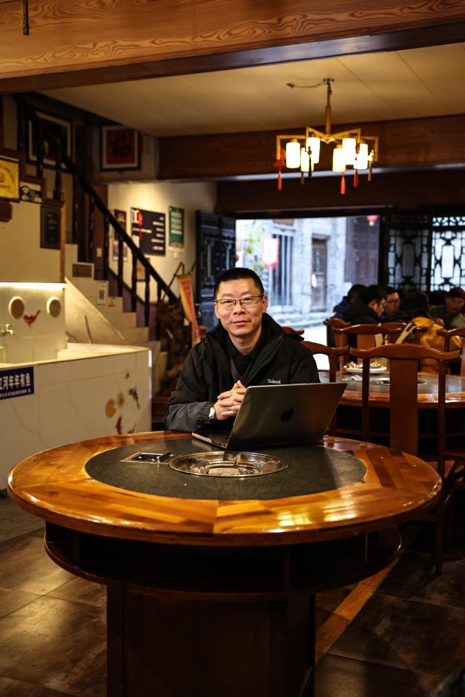 翟志刚在自己经营的餐馆内(2025年12月13日摄)。