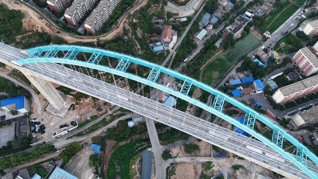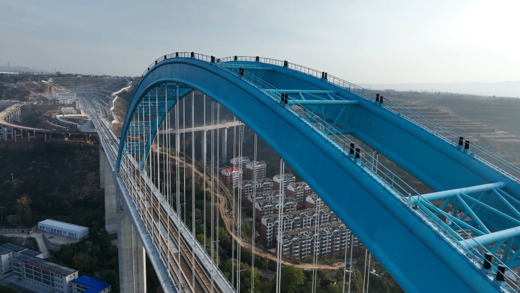位于铜川市王益区的王家河特大桥全长1066.7米,主跨采用了混凝土连续刚构加拱组合结构,有效提升了结构刚度,实现了列车高速运行的平顺性。大桥105米的桥高与248米的主跨,使之成为目前国内高铁无砟轨道同类型桥梁中,跨度与高度的“双料冠军”。