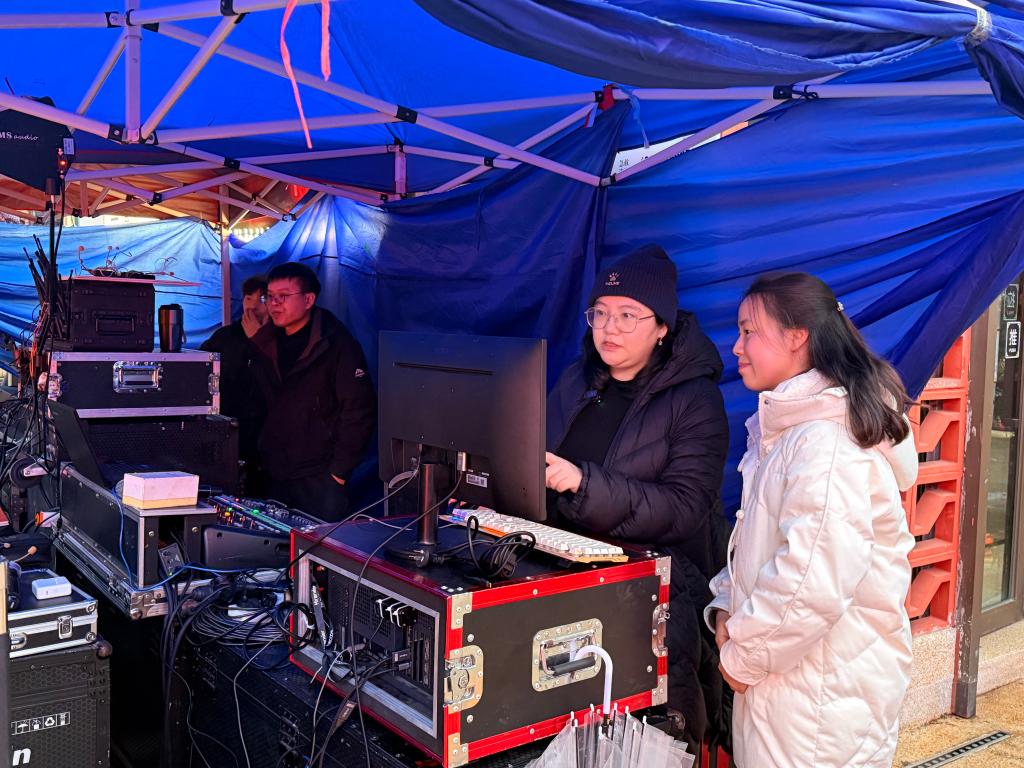 控制台是王悠的“临时指挥部”。过去一个月,她和区文旅委、街道社区的同事们加班加点,协调几十个演出团体,平衡专业院团与居民节目的时长,只为办出“我们的晚会”。