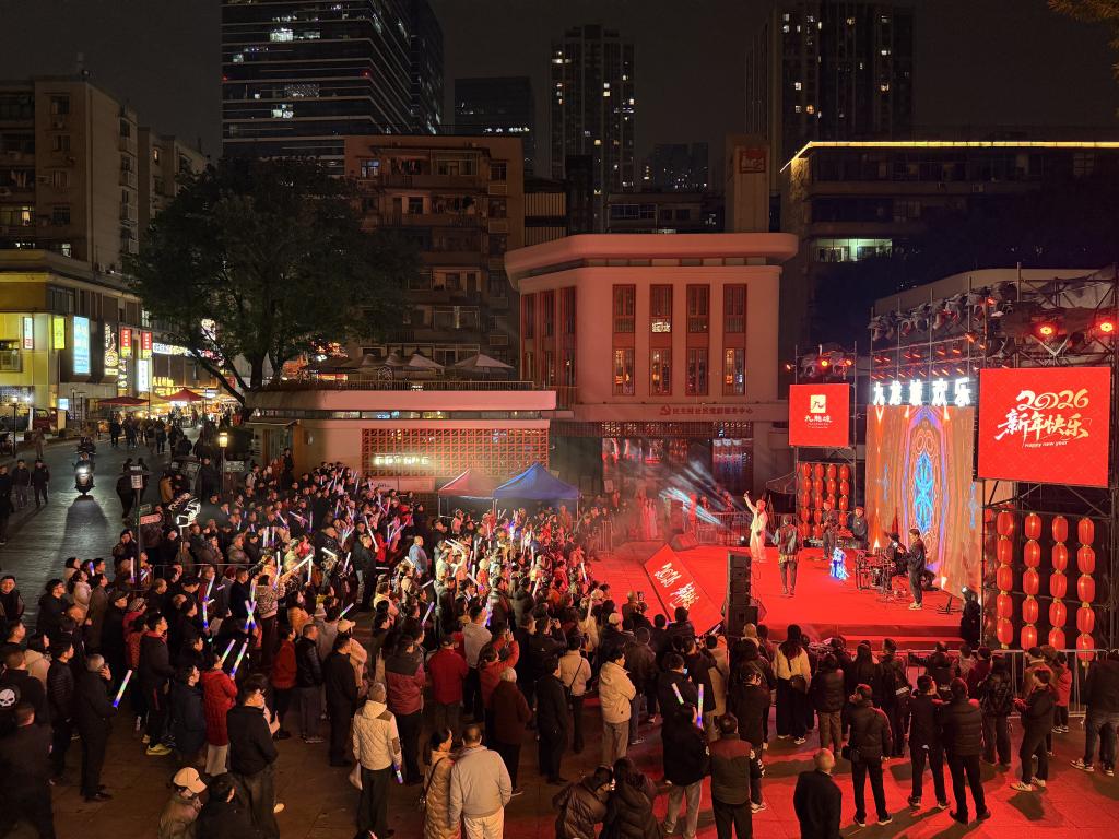 新华社重庆1月1日电(记者吴燕霞、周思宇、赵佳乐)2025年最后一天,重庆市九龙坡区民主村社区临时搭建的舞台上乐团正在彩排,红彤彤的灯笼挂在两侧,热闹的背景音乐回荡在社区上空。