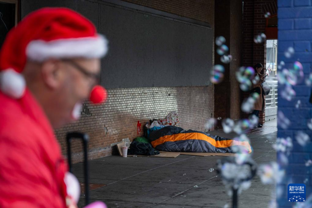 美国迎接新年之际,无家可归者的身影让热闹的节日气氛难掩一丝悲凉。