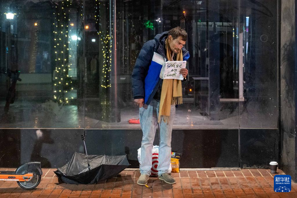 2025年12月31日,无家可归者在美国加利福尼亚州旧金山街头避雨。
