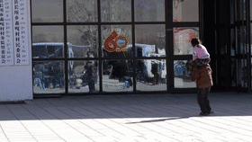 1月5日,在定日县长所乡森嘎村村史馆前的广场上,小朋友背着妹妹玩耍。新华社记者 姜帆 摄