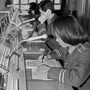 1986年1月10日,广州市公安局开通全国首家110报警服务台。这是1986年2月拍摄的第一代接线员在工作中。新华社发(周晓辉 摄)