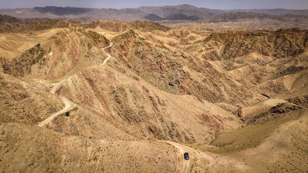 2025年5月13日,李世翔驾车前往黄河黑山峡考察途中经过一段崎岖山路。
