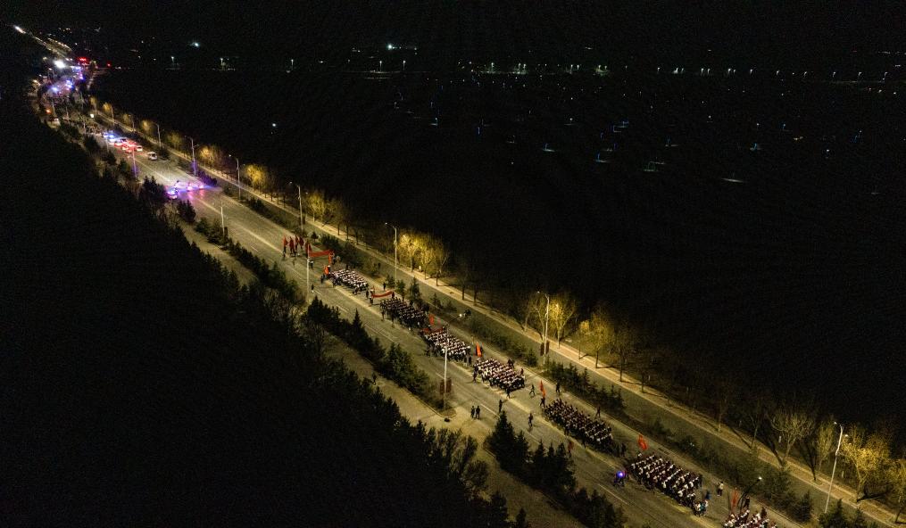 2025年4月3日凌晨,参加徒步祭英烈活动的师生从固原市城区出发,前往位于彭阳县的任山河烈士陵园祭奠英烈。
