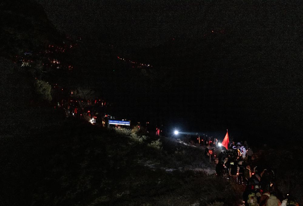 夜色如漆,路灯寂静。这座山城还未从睡梦中醒来,宁夏固原二中和弘文中学千余名师生已行进在道路上,逐渐远离城区,徒步前往任山河烈士陵园,祭奠长眠在那里的391名烈士,全程往返共108里。