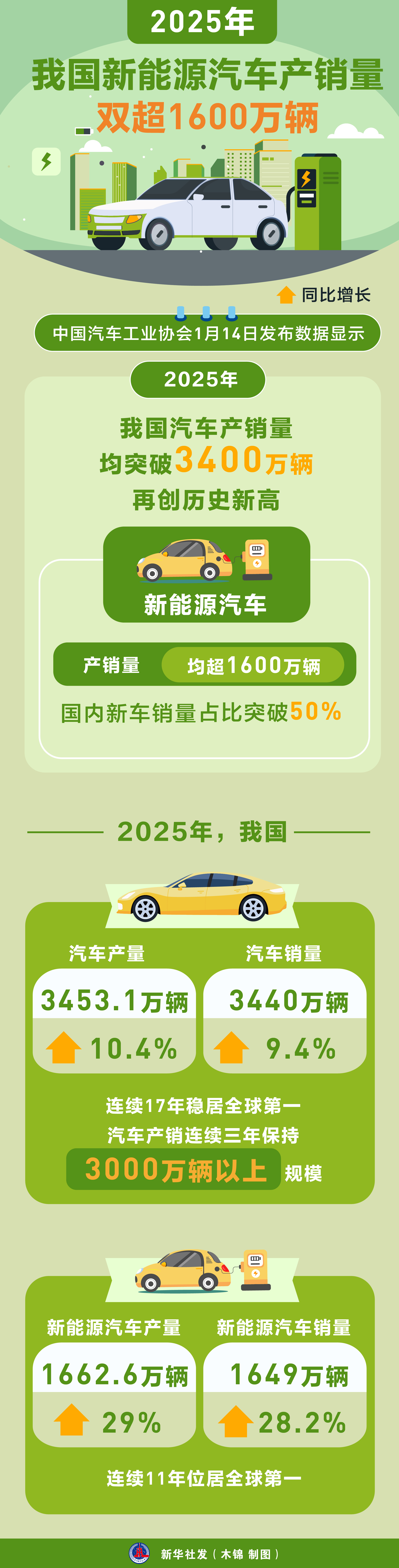 图表丨2025年我国新能源汽车产销量双超1600万辆-新华网