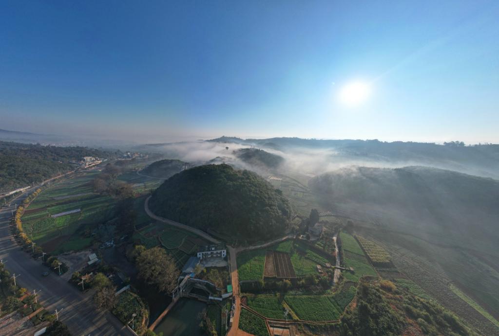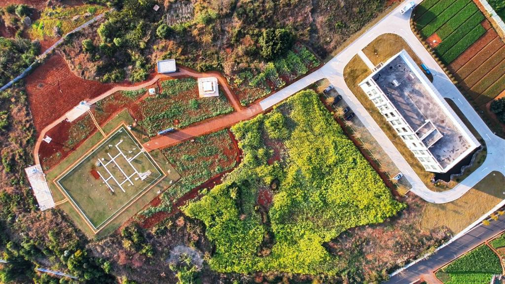 2025年1月14日,从空中俯瞰中国气象局弥勒云贵准静止锋野外科学试验基地。(杨阳 摄)