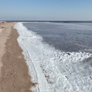 辽东湾位于渤海东北部,拥有中国最北海岸线。记者在葫芦岛兴城市、盘锦市海滨看到,近岸的海冰冻得厚实,覆盖着一层薄薄的雪,白茫茫一片。一些停靠在近海的渔船受寒潮天气和海冰影响,暂时难以出海。