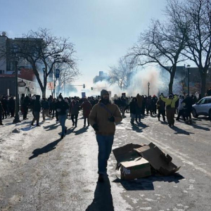 这是1月24日在美国明尼苏达州明尼阿波利斯市拍摄的示威抗议现场。新华社发