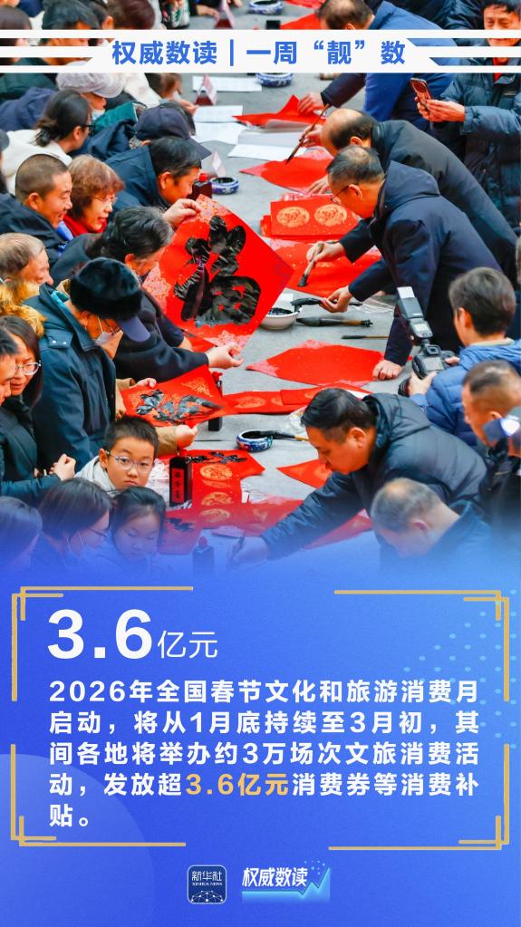 今年春运期间全社会跨区域人员流动量将会达到95亿人次,预计创历史新高;2026年全国春节文化和旅游消费月启动,期间将发放超3.6亿元消费券等消费补贴;2025年制造业利润增速大幅回升8.9个百分点……本周,这些数据最值得关注!