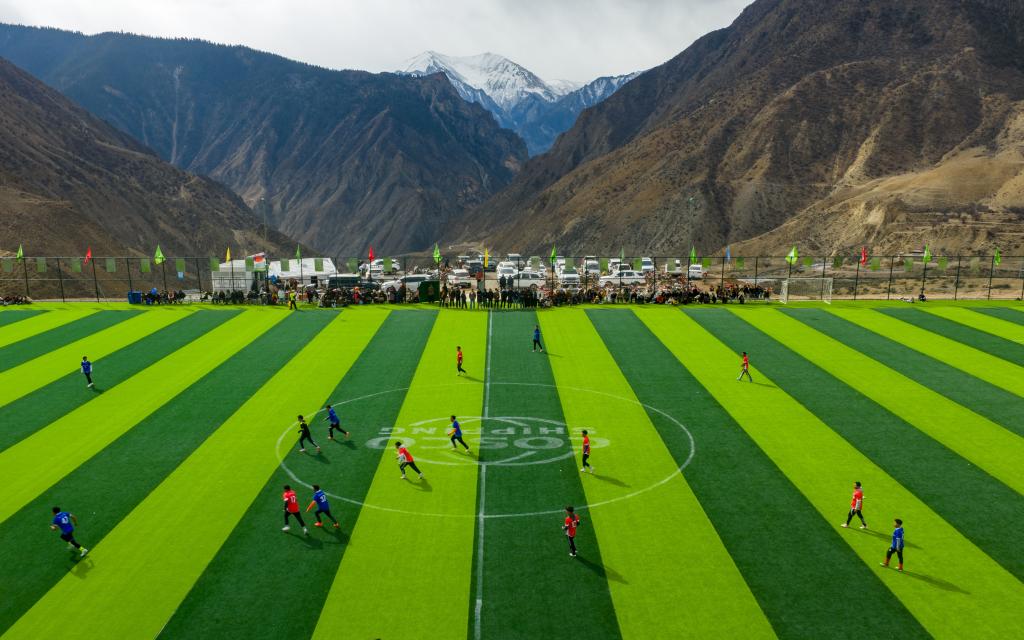梦想终有回响。2024年,洛隆县与对口支援企业中国远洋海运集团一道在土球场附近,投资200余万元建成一座占地8000余平方米的11人制标准足球场,当年12月顺利竣工,被当地人亲切唤作“云上球场”。