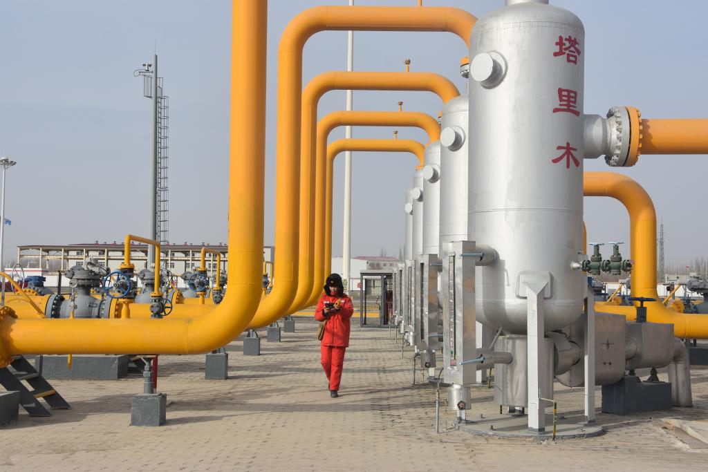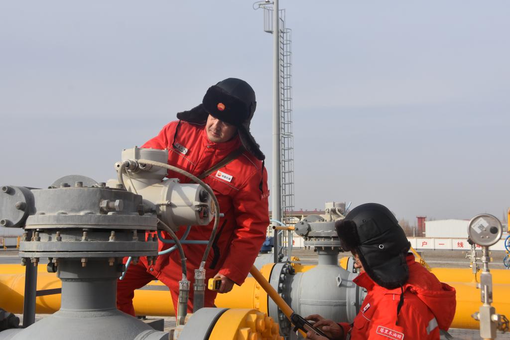 2026年2月4日,中国石油塔里木油田西气东输第一站员工正在巡检。(新华社记者 顾煜 摄)
