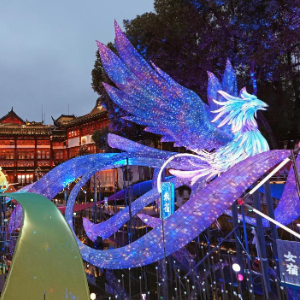 1月26日在上海豫园九曲桥拍摄的运用数字光影技术的灯组。新华社记者 刘颖 摄
