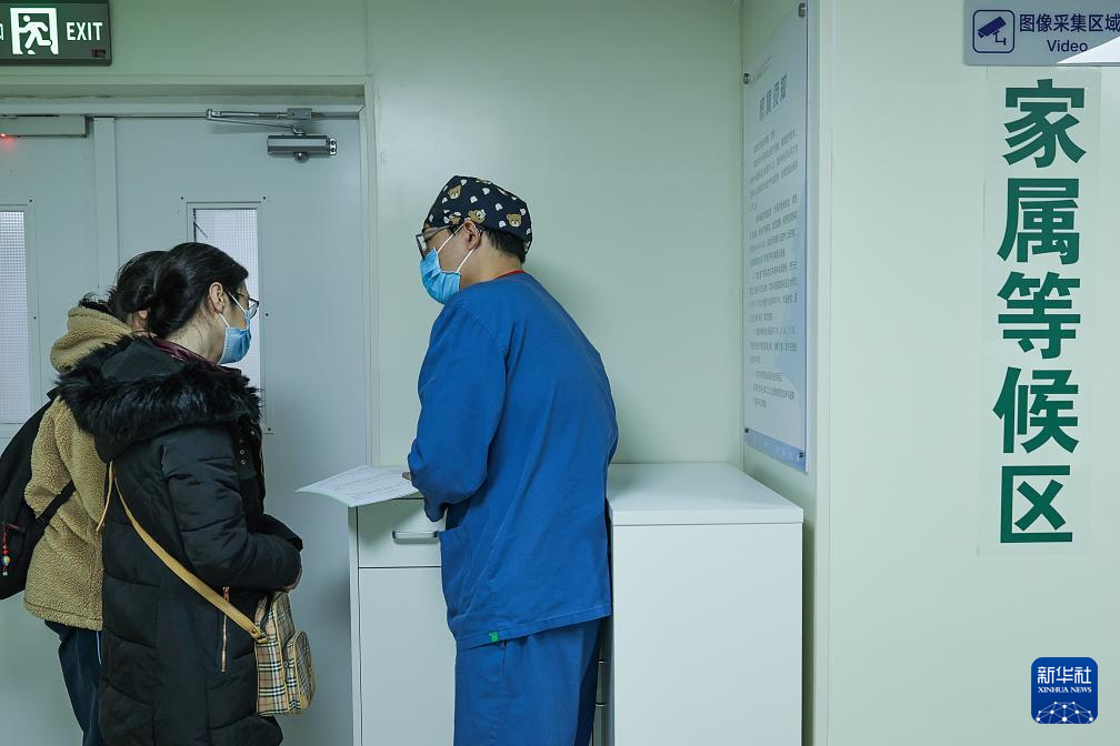 2月4日3时许,重症监护室的护士对家属进行入院宣教。