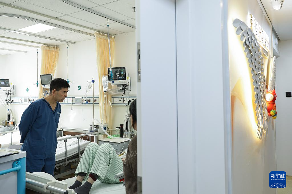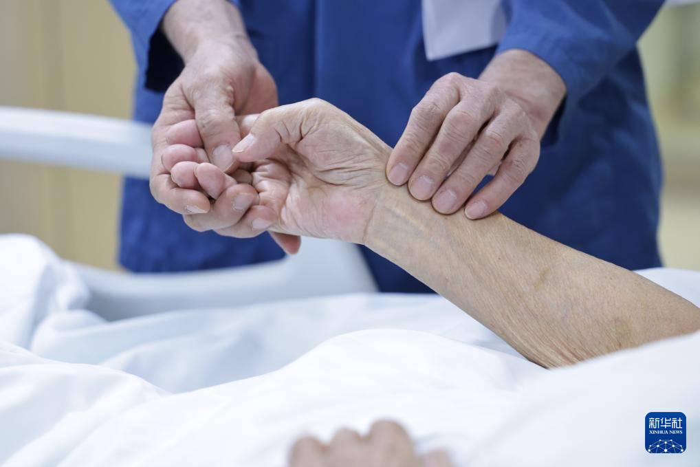 2月12日11时许,一名护士在重症监护室为一名患者进行电热砭石技术操作。