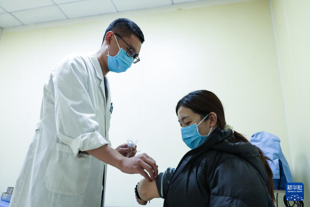 2月4日5时许,一名护士在急诊病房为患者抽血。