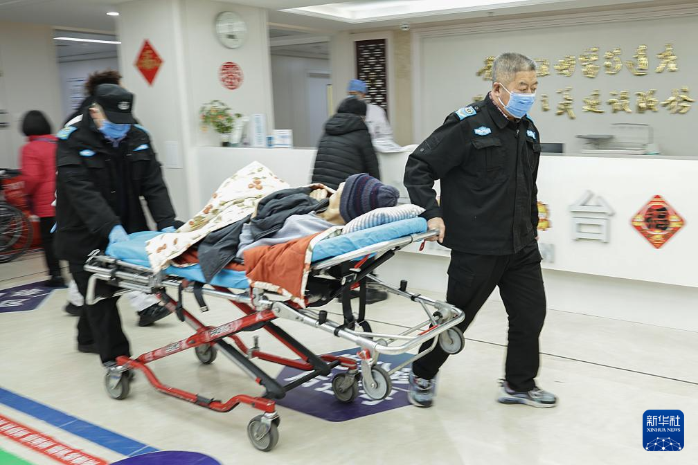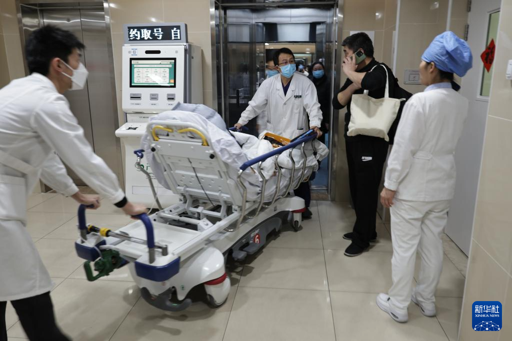 2月12日13时许,医护人员将一名留观室的病人转送到重症监护室。