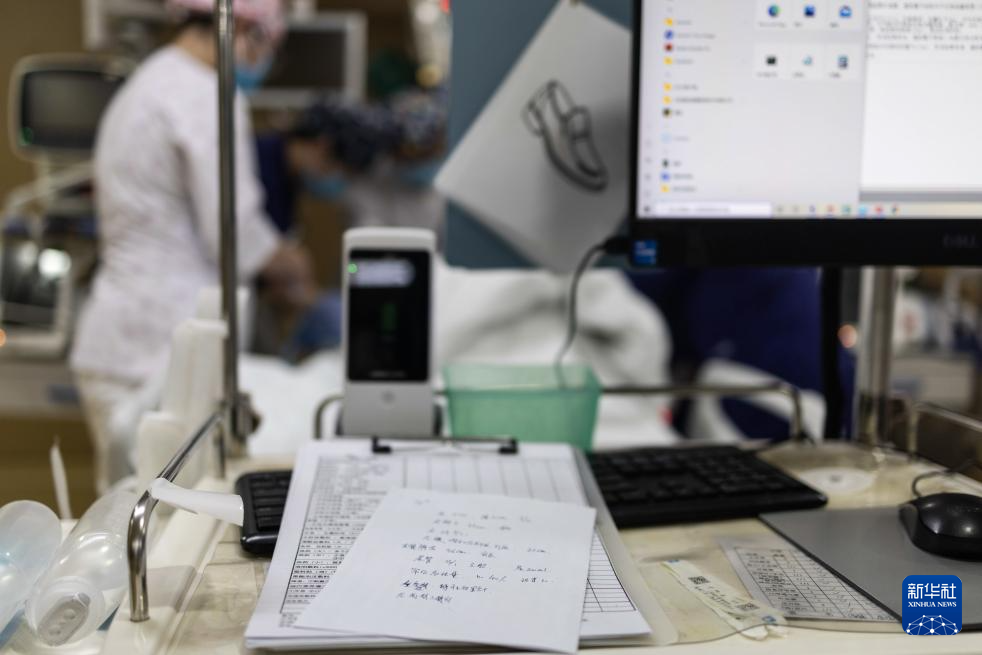 2月4日3时许,重症监护室护士在对一名刚从手术室转运来的病患进行护理,并对病患身体多项指标进行临时记录。