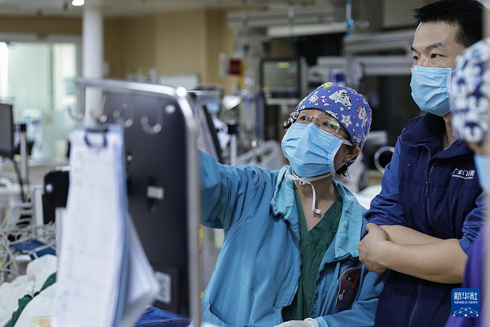 2月9日7时许,急诊科主治医师李琼在查看病人病情。