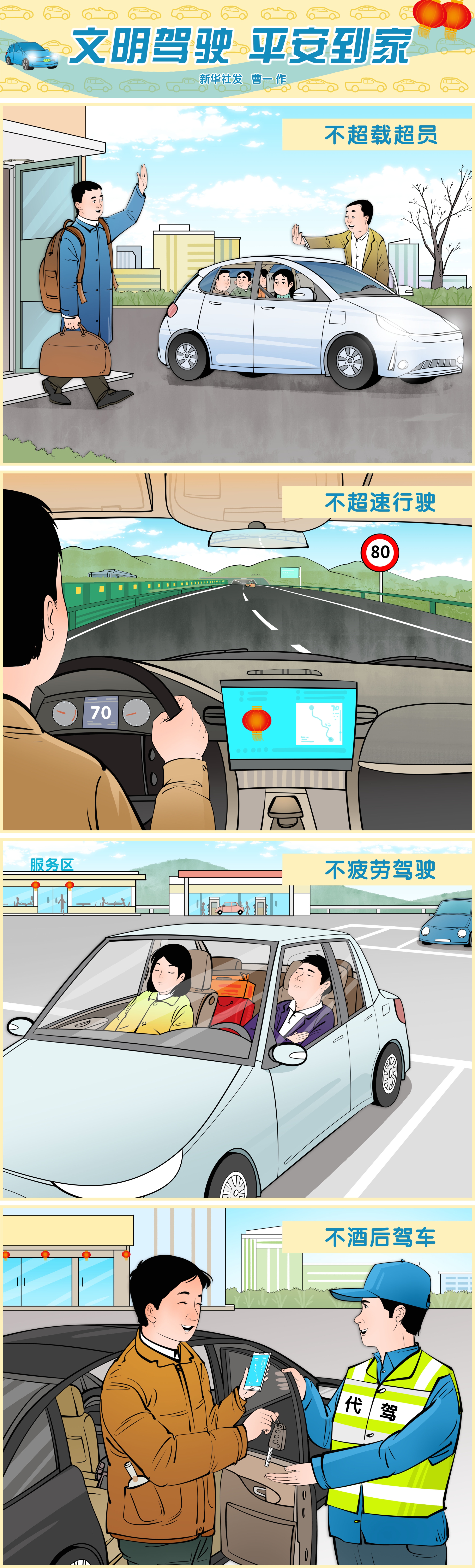 春节·漫话图说丨文明驾驶 平安到家-新华网