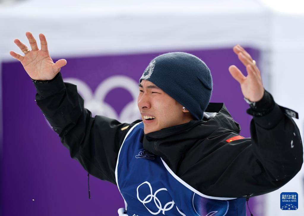 2月18日,中国选手苏翊鸣在比赛后庆祝。