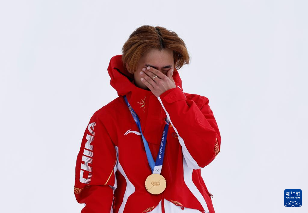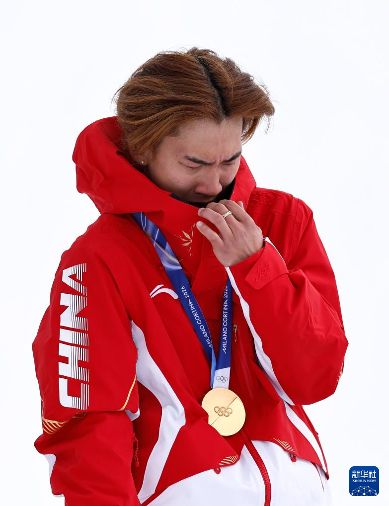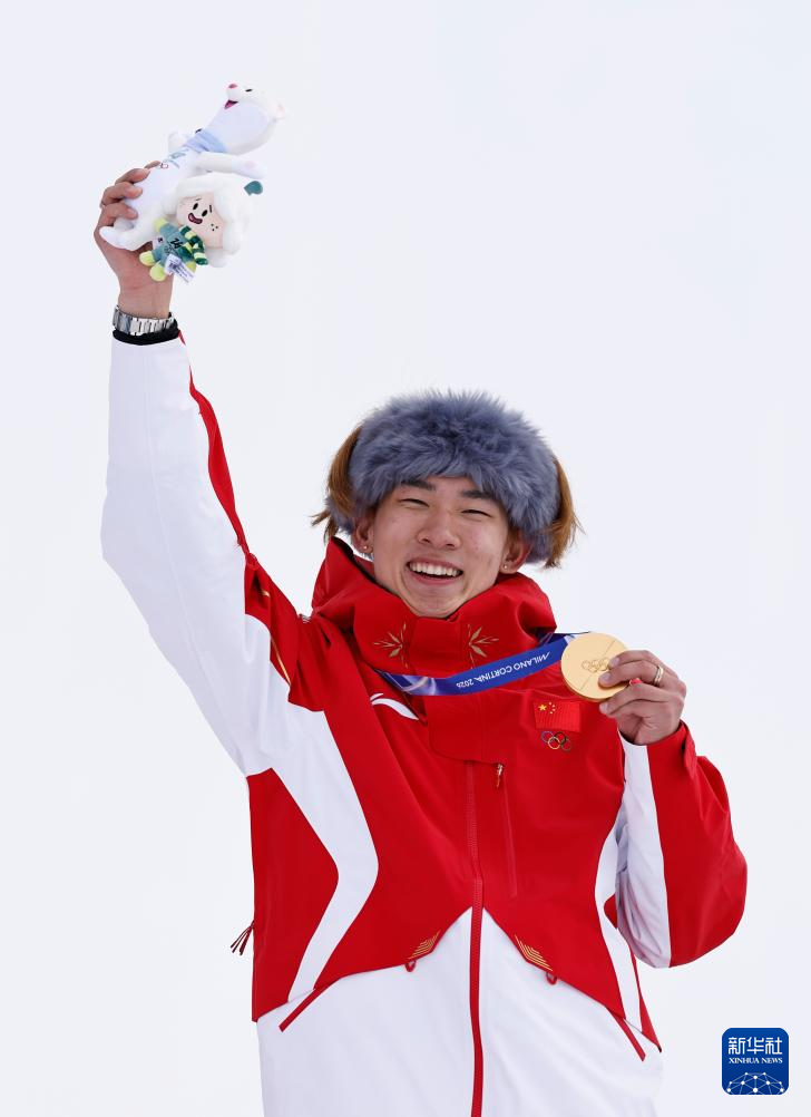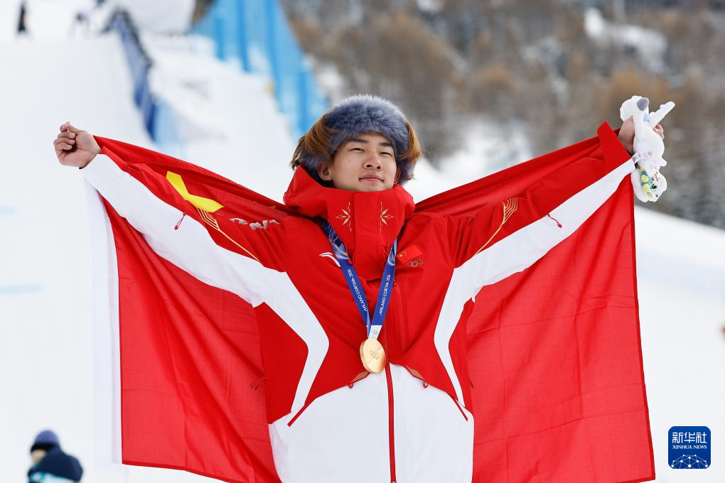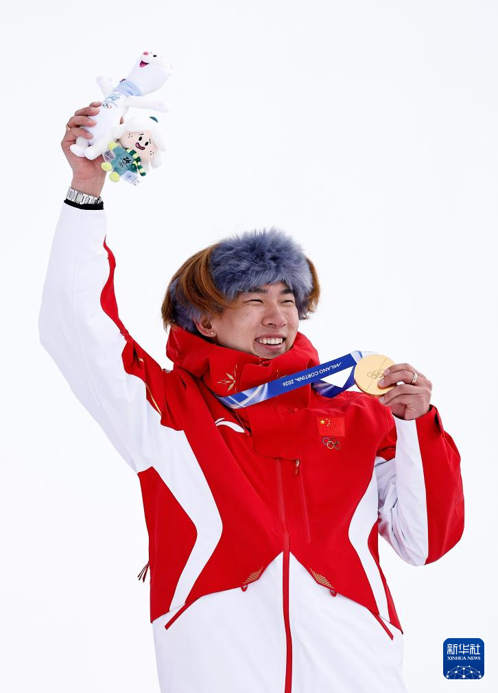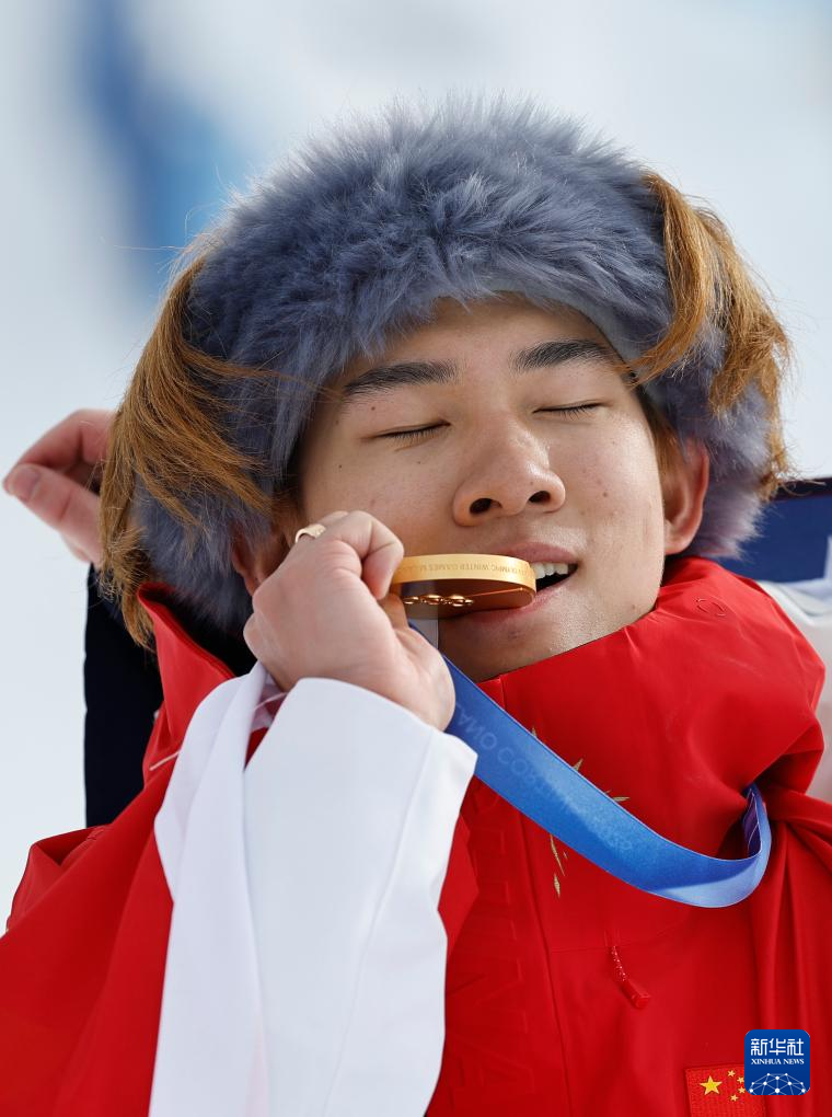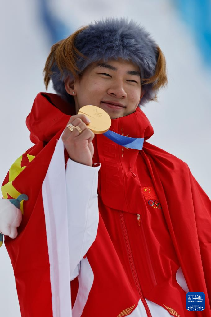 2月18日,冠军中国选手苏翊鸣在颁奖仪式上。