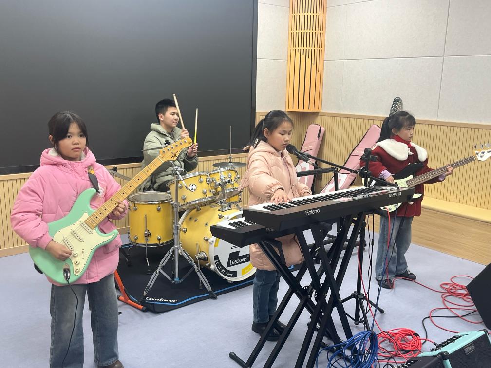 春节前夕,“萤河计划”乐队在学校音乐室内排练。新华社记者周思宇摄