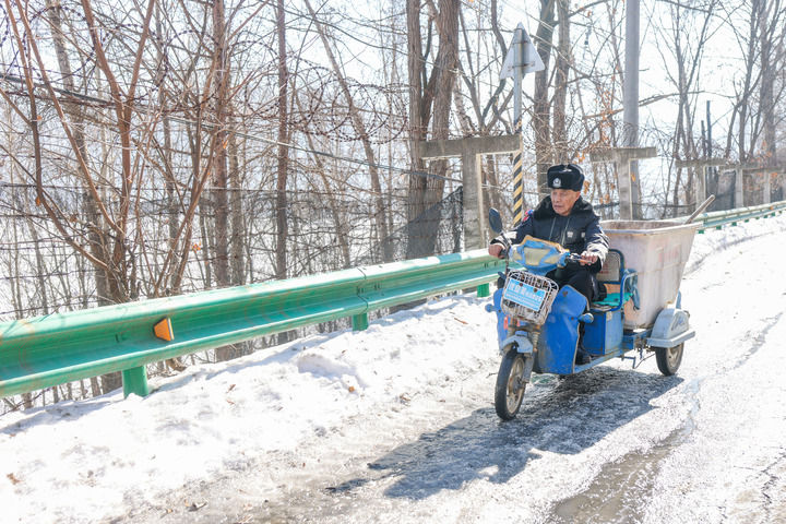 大年初五清晨,中朝边境的鸭绿江畔,仍然沉浸在春节氛围里的下活龙村十分安静。乡间小路上,车轮碾过路面薄冰的声音越来越清晰,一辆蓝色的三轮垃圾清运车缓缓驶近。77岁的宋培跃骑在车上,人显得格外精神。这辆小车,既负责村里的垃圾转运,也是他去年新得到的巡边“座驾”。