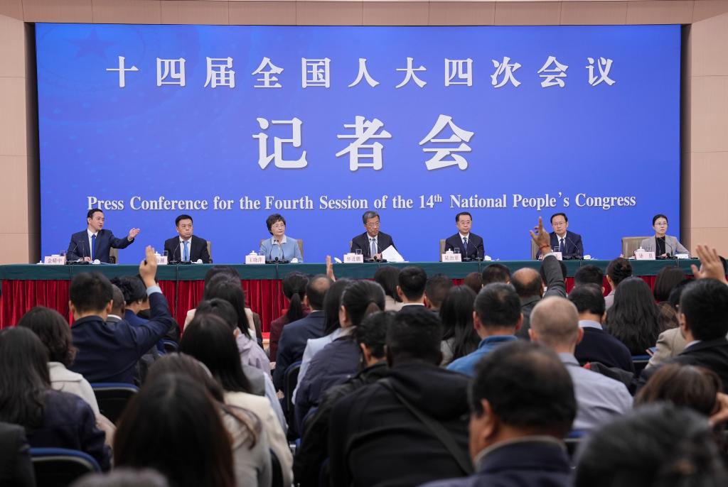 2026年3月7日,十四届全国人大四次会议在北京梅地亚中心新闻发布厅举行记者会。教育部部长怀进鹏、民政部部长陆治原、人力资源和社会保障部部长王晓萍、文化和旅游部部长孙业礼、国家卫生健康委员会主任雷海潮就教育、民政、人力资源和社会保障、文旅、卫生健康等相关问题回答中外记者提问。这是记者举手提问。新华社记者 王曦 摄