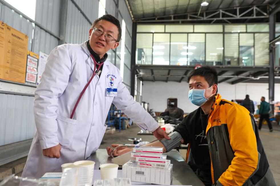 2026年3月13日,西藏自治区邮政管理局联合北京援藏医疗队在拉萨一家快运物流园区开展“高原党旗红 健康管理三进入”快递从业人员专场义诊活动。新华社记者 姜帆 摄