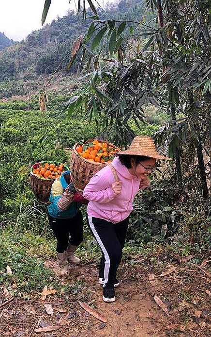 黄文秀生前与村民一起采摘运输砂糖橘(资料图)。新华社发