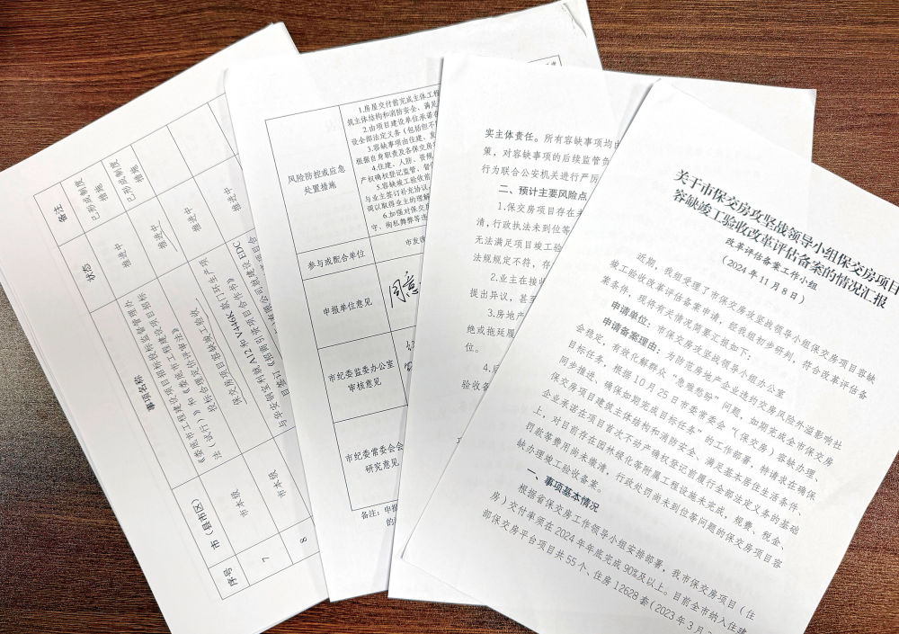 娄底市相关部门申请“保交房”项目容缺竣工验收改革评估备案的部分材料。新华每日电讯记者谢奔摄