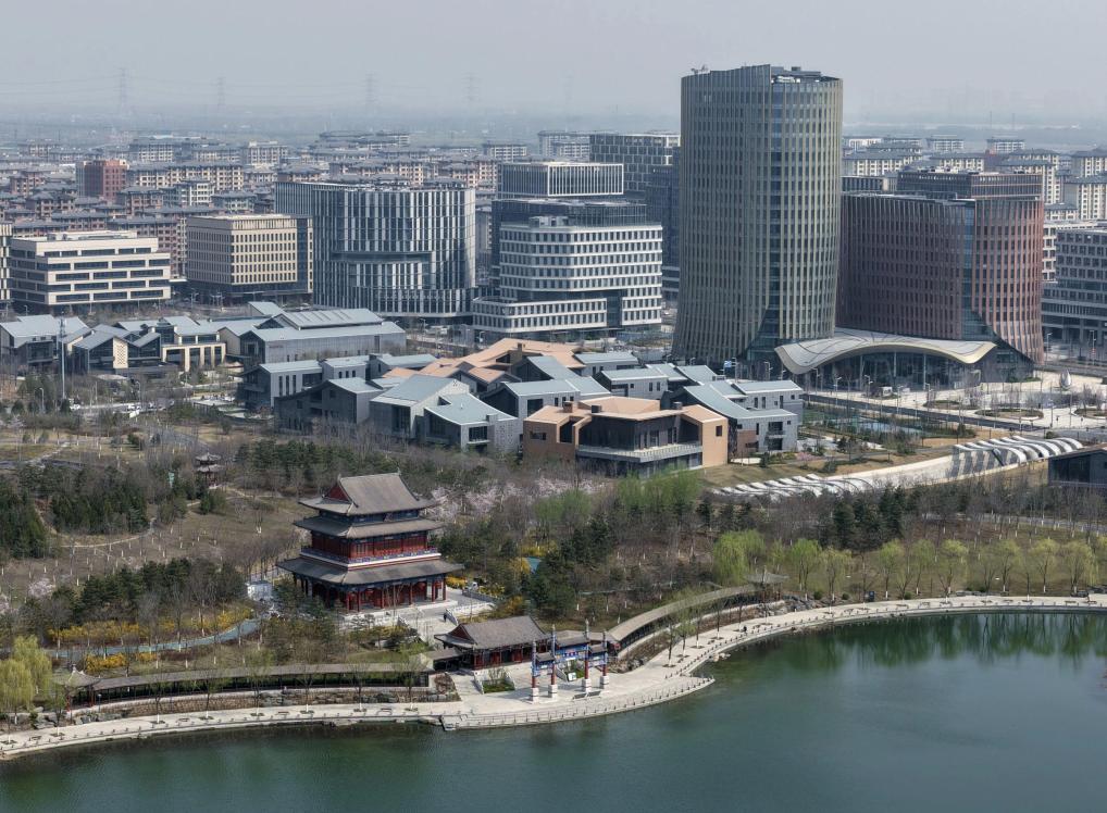 ↑3月27日拍摄的雄安新区春景(无人机照片)。