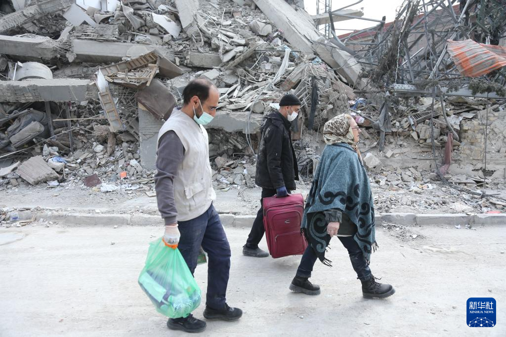 3月12日,在伊朗德黑兰,市民站在建筑废墟前。