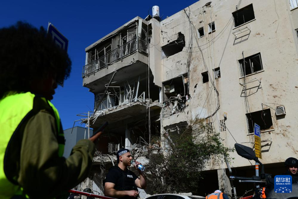 3月24日,在以色列特拉维夫,应急人员在导弹袭击现场工作。