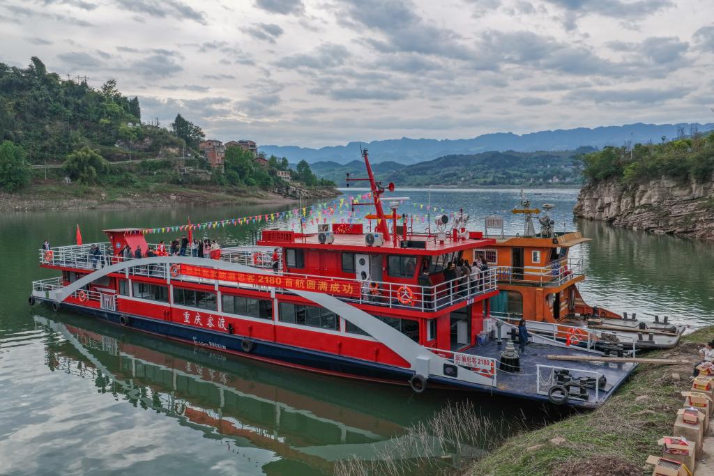 3月31日,在重庆忠县西山码头,群众热情欢迎搭乘首趟“新渝忠客2180”客轮的乘客。