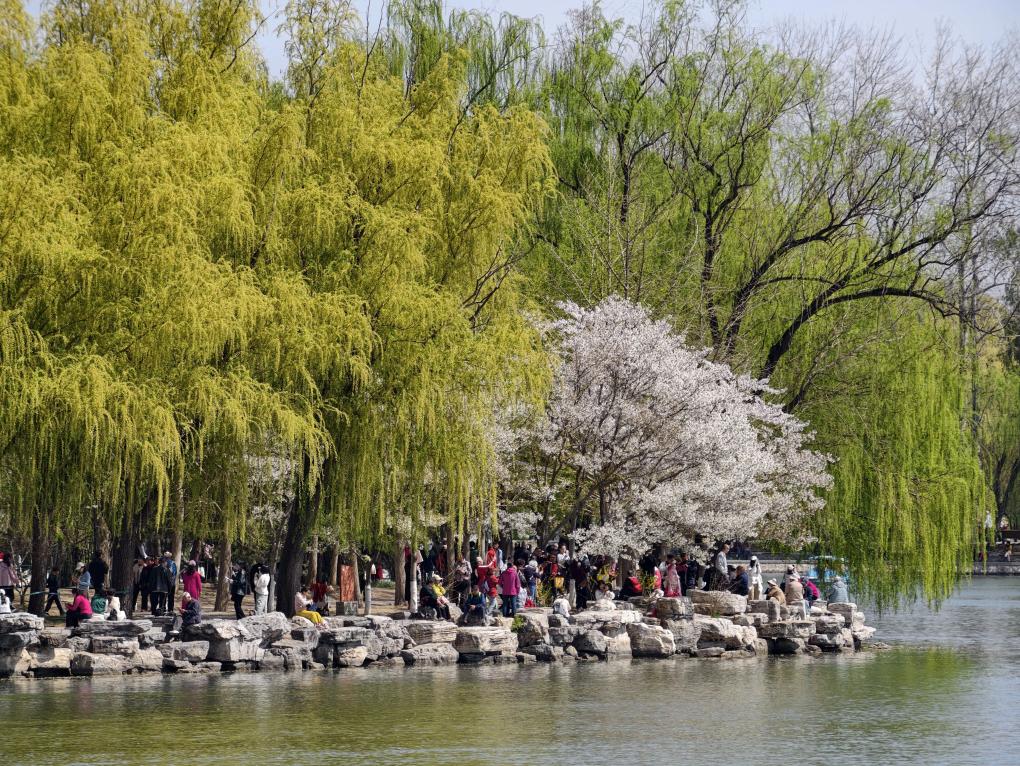 4月1日,游客在北京玉渊潭公园游览。新华社记者 邢广利 摄