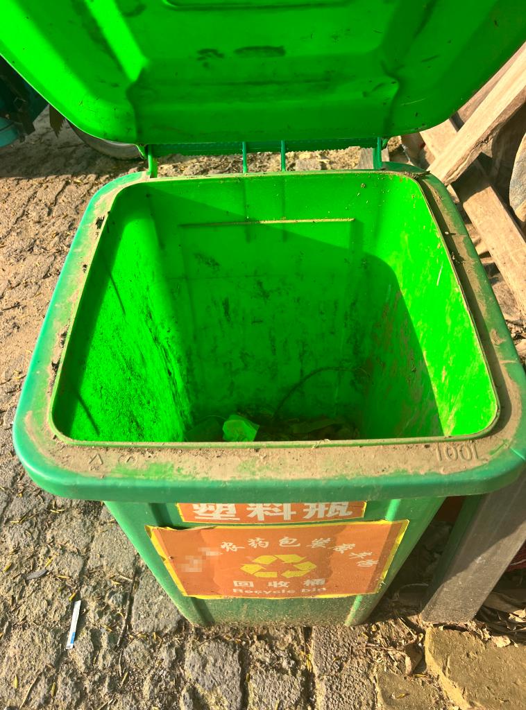 这是在中部某省一农资经销点拍摄的农资废弃物回收桶,目前已成垃圾桶(4月1日摄)。记者采访得知,2022年该地鼓励各农资经销点开展农资废弃物统一回收,并按重量给予相应现金奖励。活动开展后,不少村民把种子袋、农药瓶等农资废弃物收集起来,前往各农资经销点进行废物置换,但活动开展一年便停滞。目前,该经销点农药包装废弃物回收桶已成垃圾桶。来此采购种子、农药的农民坦言,种子袋、农药瓶卖给收废品的也不值钱,用完就随手扔到农田旁的沟壑里。