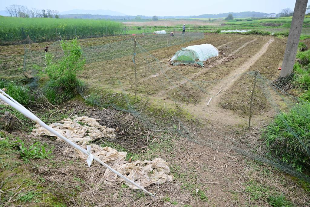 在华东某省一处农田,废旧地膜散落在田间地头(4月2日摄)。
