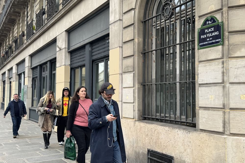 行人走过位于巴黎中心区的“潘玉良广场”(张百慧 摄)